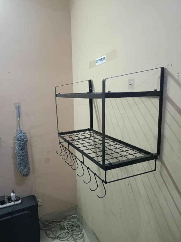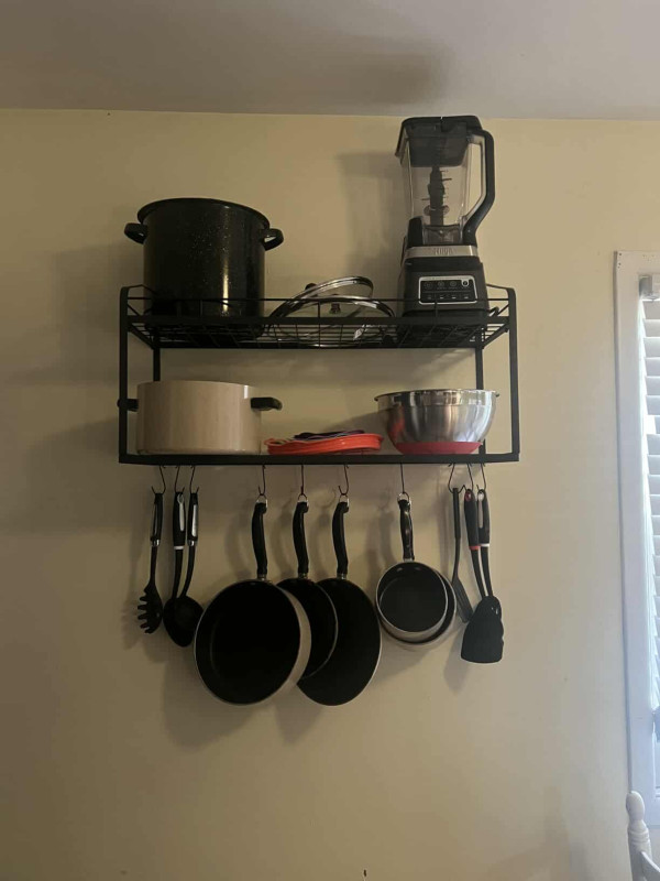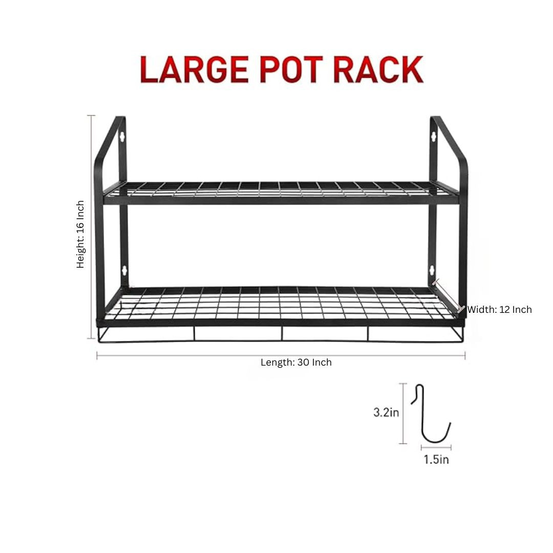 Wall mounted double layer pot rack with spoon holder